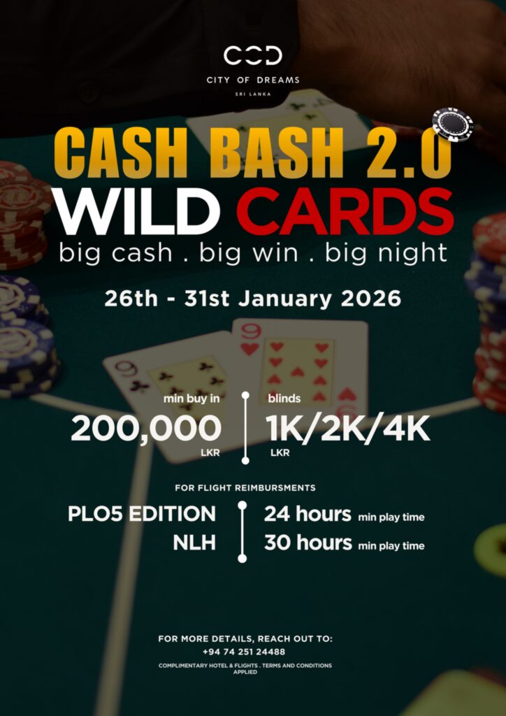 Following the massive success of our previous events, Cash Bash 2.0 returns bigger and bolder. We are taking over the City of Dreams, Sri Lanka for six days of non-stop action. Whether you are a PLO specialist or a Hold’em grinder, the tables are set for high-octane action.